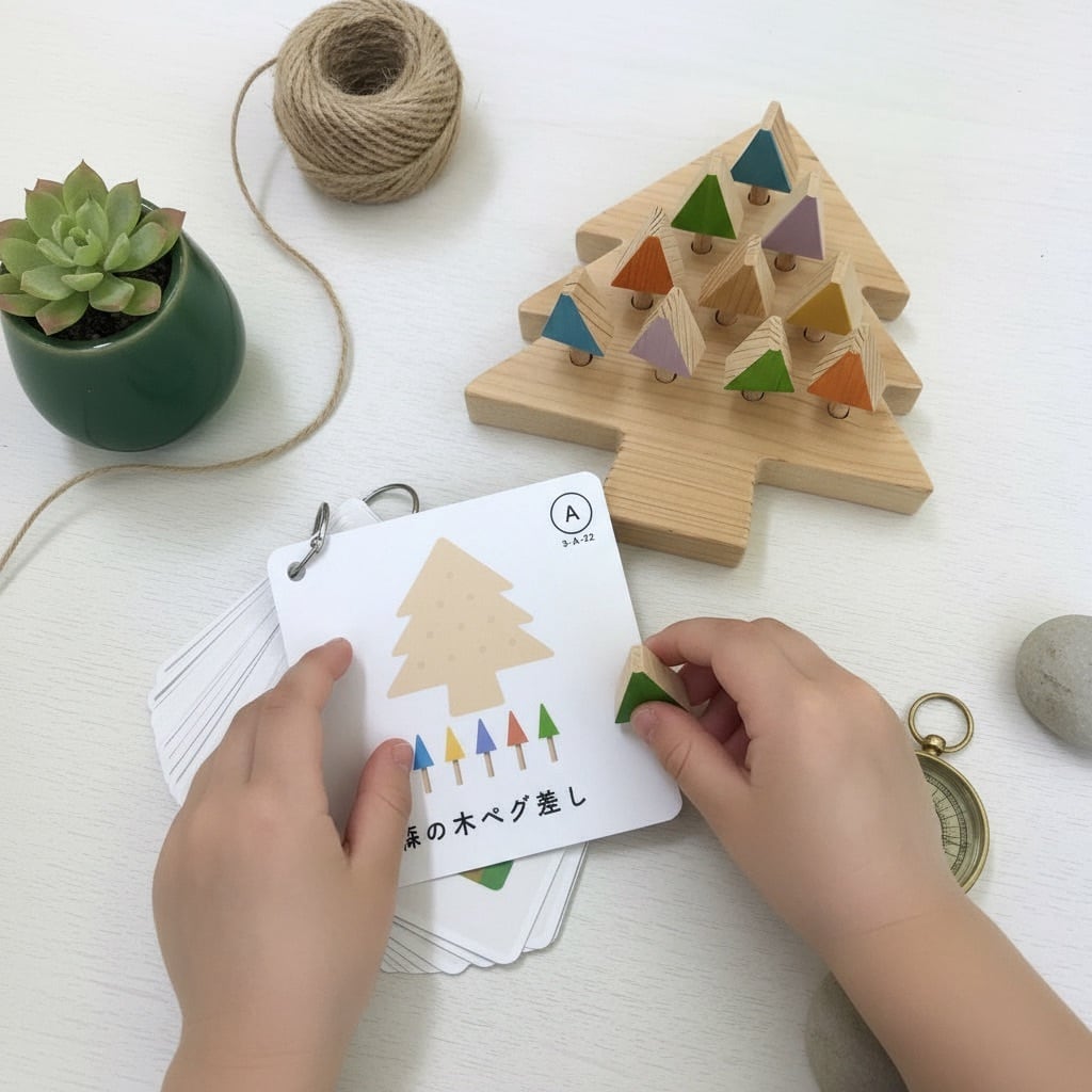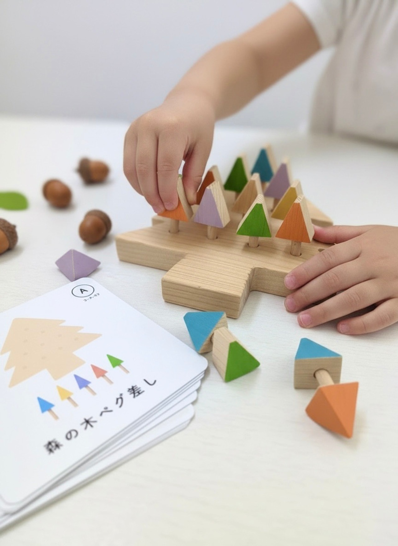 木のぬくもりを感じながら、認知力・位置表象・微細運動を育む構成です。